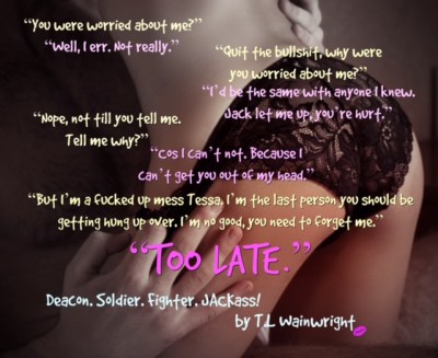 When Tessa Walker stumbles upon a beat-up lump of muscle in a dark alley, against her better judgement she doesn’t walk away. The obnoxious, foul mouthed, jackass does nothing but piss her off from the get go. It’s not until she cleans up some of the blood and shit from his face while he’s sparked out, that she realises he’s a blast from her past.