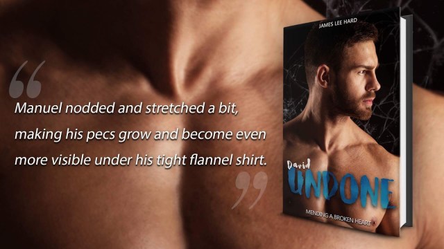 “He leaned in and placed his hand on David’s cheek, almost covering his whole face in the process. Time seemed to slow down as David saw Manuel lean in for a kiss and felt his own heartbeat against Manuel’s warm hand. Before he could realize what was happening, Manuel kissed him, his soft lips touching his, the taste of coffee invading him. David thought to protest and explain to Manuel things couldn’t be like that. He wasn’t an easy man who slept with the first guy that winked at him. His reasoning, however, was washed away by the lust that took ahold of his body, as Manuel’s tongue began to explore his. His slow exploration quickly transformed into a passionate kiss. Manuel moved in closer to David. His hands slid to his torso and grabbed firmly, pulling David closer to him. David marvelled at the ease with which Manuel pulled him in, as if he was light as a feather, but quickly forgot it as their chests bumped into each other. Manuel’s heart thumped wildly underneath his flannel shirt and his body heat enveloped David in an erotic embrace. Suddenly, David realised this was his chance to see what hid underneath Manuel’s clothes. He wouldn’t need to depend on his imagination anymore.”
