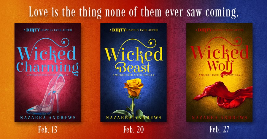 Today we are celebrating the cover reveal for the WICKED EVER AFTER series by Nazarea Andrews. This is an erotic, fairy-tale series that will each be releasing in February. You can sign up for Nazarea’s newsletter for exclusive materials and information on the series. Pre-order links for each of these books will be available soon.