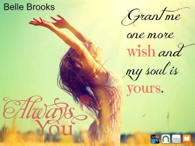 “WOW…just wow… There are very few times in life where words truly escape me. After reading Always You; I find myself having one of those moments. Belle Brooks is truly a remarkable story teller.” ~Reader Review