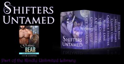 Sheltered bear princess Delia is on the run for her life. Glenn, bouncer at the nightclub Animals is just the grizzly to save her, but convincing her he’s also her mate is harder. Her murderous ex taught her love is to be feared.