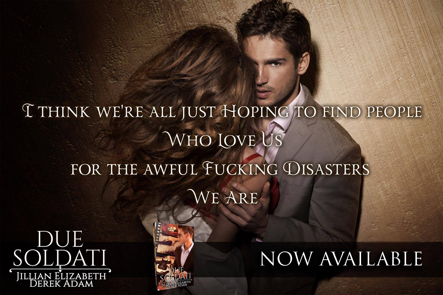 “Due Soldati by Derek Adam & Jillian Elizabeth is a roller coaster read. This book has everything a reader is looking for; mystery, steamy scenes, drama, ups and downs, and heartbreak. The way it is written makes it feel as if you are right there taking it all in as it happens. It made me laugh, cry, want to throw it, but lastly, I read it one sitting as I could not put it down.” – Coffeemom (GoodReads)